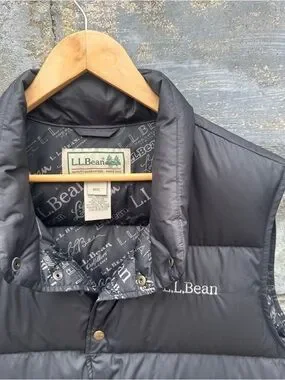 Vintage Ll Bean Black Goose Down Filled Puffer Vest Sz XL Downtek