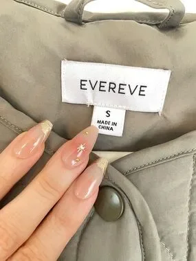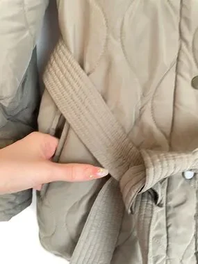 EVEREVE long green quilt jacket snap buttons with fabric belt size small