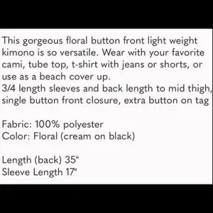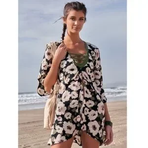 Dark floral kimono top beach or swim cover up spring summer boho coastal