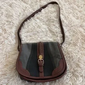 Compact crossbody with dual-tone leather panels. Braided leather trim and front buckle accent. Adjustable shoulder strap for easy wear. Classic silhouette for daily use.
