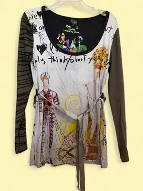Desigual Multi-Color Graphic Long Sleeve Tunic with Waist Tie