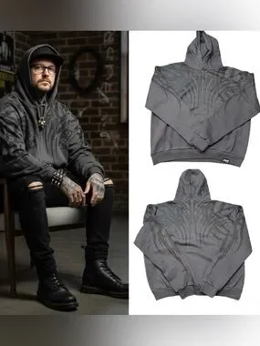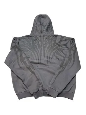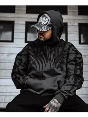 Our „Necroblade“ Heavy Oversized Hoodie isn’t here to blend in - it’s a 400gsm, 100% cotton heavyweight in storm-grey for anyone who walks where the light fears to tread. Black death-metal tribal lines slash across front, back, and sleeves like armor forged from shadows.