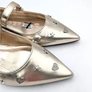 Karl Lagerfeld Paris Veyda Mary Jane Flat Women's White Gold Size US9M EU40