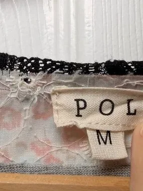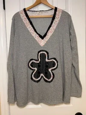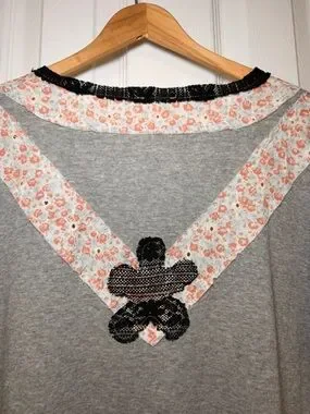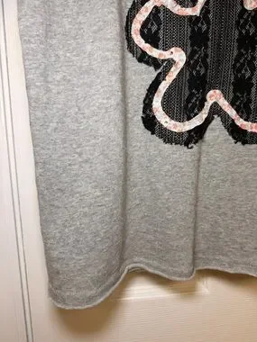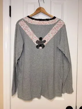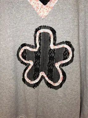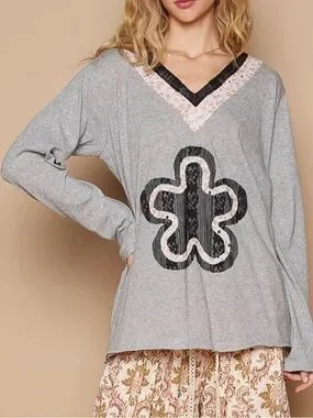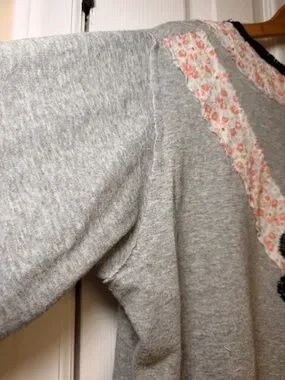 POL Lace Flower Patchwork Bohemian Top Gray Long Sleeve Medium Vintage Vibes