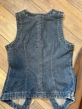 New without tags. Never used. Excellent condition. Size 2. Sleeveless denim vest with front button closure. Classic medium blue wash with subtle fading. Simple seam details for easy layering. Casual, versatile style.