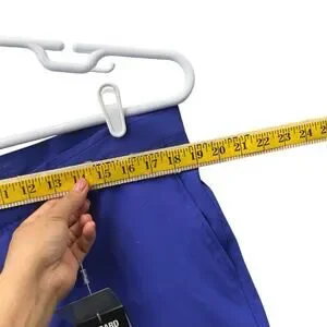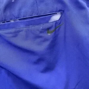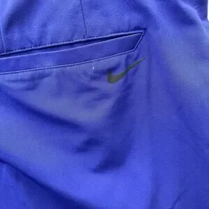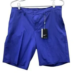 The Nike Golf Shorts for Men in size 35 are designed with a modern fit and chino style, perfect for travel and casual occasions. Made with Dri-Fit technology, these navy blue shorts feature a zip closure, stretch fabric, and slash pockets. The 10-inch inseam and polyester-spandex blend make them comfortable for all-day wear in the summer, fall, or spring seasons. The Nike brand and sport-themed design add a touch of style to your wardrobe. Perfect for the avid golfer or casual dresser alike. Please check pictures for details and measurements