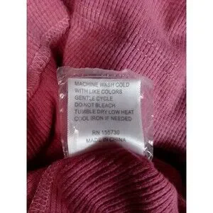 Elevate your basics with this beautiful rose-pink waffle knit top. Featuring a flattering V-neckline and unique oversized cuffs accented with three decorative bronze-tone buttons. The fabric has a soft, lived-in feel with subtle seaming details down the back for a structured look. Perfect for layering or wearing on its own for a cozy, chic aesthetic.
