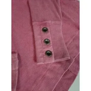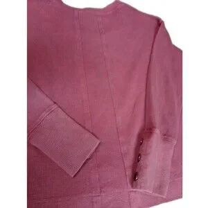 Jane + Delancey Pink Waffle Knit Top Button Cuff V-Neck Pullover Thermal L