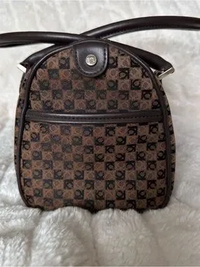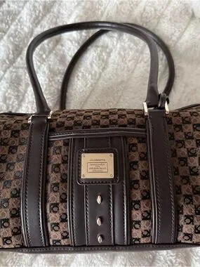 Liz Claiborne Brown Patterned Shoulder Satchel with Dark Trim