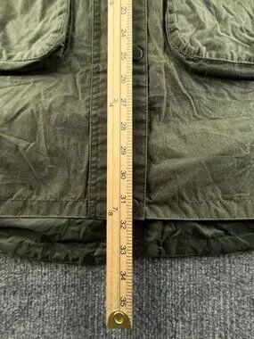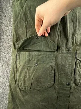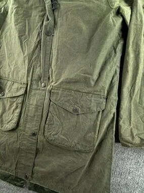 Please note: Waxed jackets naturally develop a distinct wax/oil scent, especially when they have been worn or stored. Because they cannot be machine-washed, the waxed finish and its aroma are part of the jacket's character. This scent is normal for waxed cotton and is sometimes perceived as 'musty,' but it is simply the natural smell of the waxed finish. There is no mildew or mold. All items are stored in a smoke-free, climate-controlled, clean environment. What does 'good condition' mean? When we say 'good condition,' the garment will have no notable holes, stains, or other flaws, unless otherwise specified. Moderate/severe flaws are always disclosed, like holes and pea-sized or larger stains, and we do our best to disclose even minor flaws like very faint stains, dark spots, and even stains as small as a grain of rice or smaller. Flaws that are not visible while wearing and flaws that don't affect functionality (like a partially torn tag or a stain on the inside of a shirt that isn't noticeable from the outside), may not be disclosed.