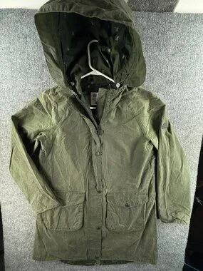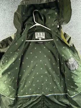 Barbour Updrift Lightweight 4oz Wax Waxed Jacket Women Full Zip Green Hooded 6