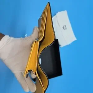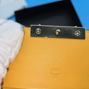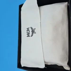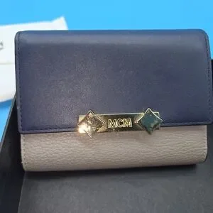 Chic MCM wallet in navy and beige. Sleek leather design. Pre-Loved. No scratches or imperfections. No smell. Dustbag included.