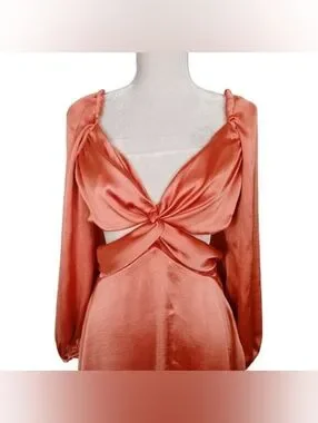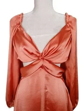 $220 Free People Justin Satin Cut Out Mini Dress Coral Size M