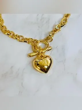 18k yellow gold plated 7” 💛 heart charm toggle oval link bracelet