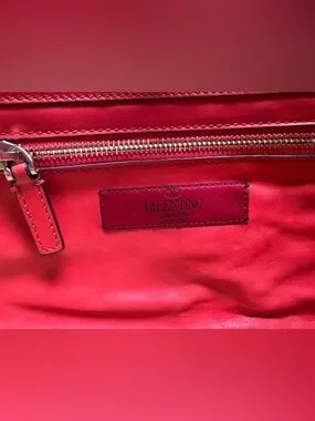 Valentino Garavani Rockstud Medium Red Leather Shoulder/Crossbody/Tote Bag W/COA