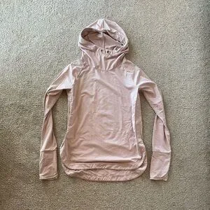 Athleta uptempo lightweight hooded pullover blush pink split sides thumbholes XS