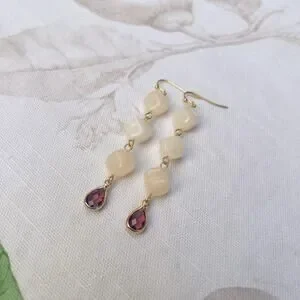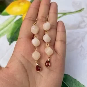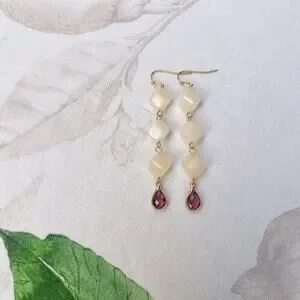 Garnet Wine Red Crystal Glass Cream Moonstone Agate Style Casual Fun Earrings