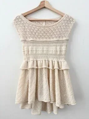 Free People Juliette Ruffle Top Cream Boho Coastal Cowgirl L