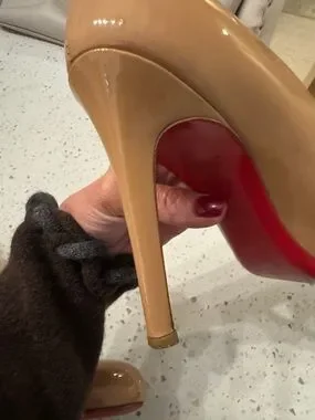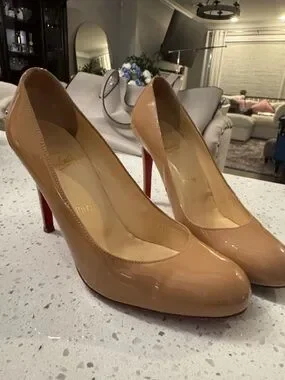 Christian Louboutin Nude Patent Leather Pumps with Red Soles