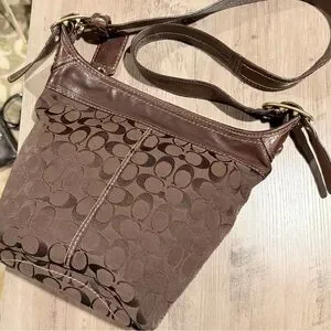 Stylish Coach brown leather shoulder bag with a classic design. Style # 11437. Perfect for everyday use.