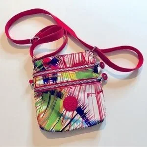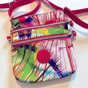Kipling Alvar XS Cross Body Minibag Bright Rainbow Splatter Abstract Print.