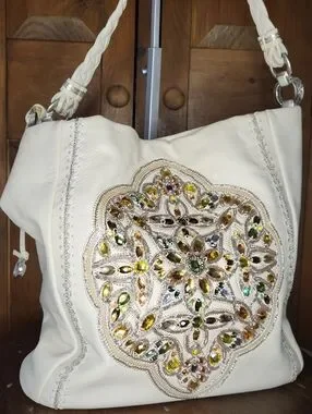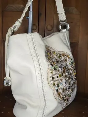 Vintage Brighton Anju hobo bag is from the Masterpiece Collection and features white leather with elaborate jeweled and beaded embellishments. Buttery soft leather. Super Excellent Original Condition. $125.