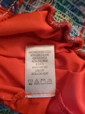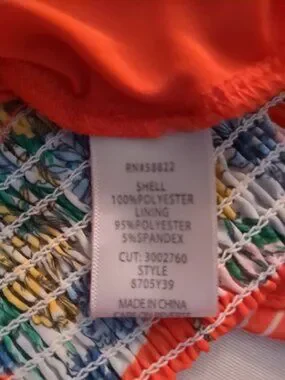 Sheer fabric over solid lining with split sleeves that show off the shoulders, perfect for summer. Has a stretchy waist. Flowered design colors are red, cream, blue, deep yellow and green. Perfect condition.