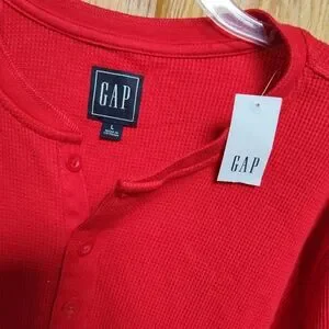 Elevate your casual wardrobe with this GAP Men's Red Henley Shirt. Crafted for comfort and style, this shirt features a classic henley design perfect for any occasion.