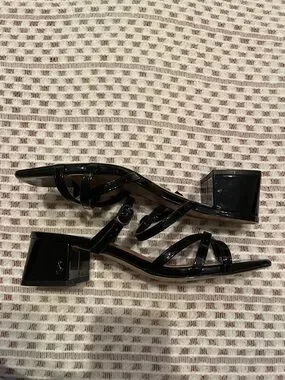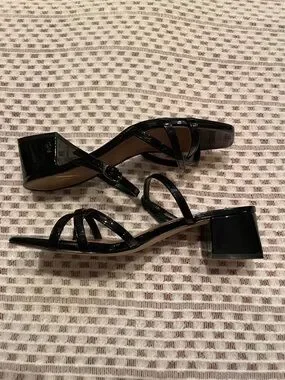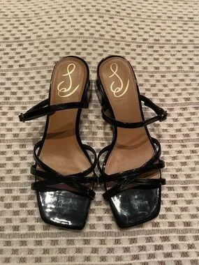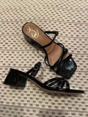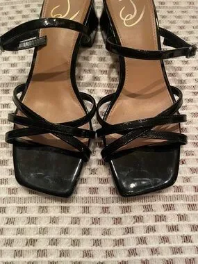 Sam Edelman Rachelle Patent Heels Black Strappy Sandals Size 7.5 Wedding Event