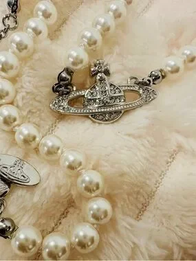 VIVIENNE WESTWOOD PEARL ORB CHOKER SILVER NECKLACE - FULL SET BOX POUCH OS
