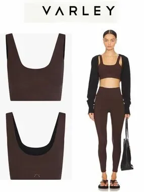 Varley Dark Chocolate Coffee Bean Scoop Neck FreeSoft Cori Bra Sports Bra S $73