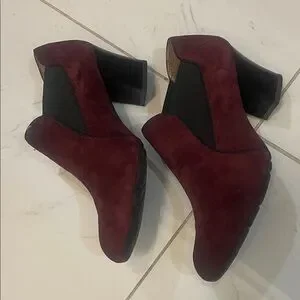 Franco Sarto Burgundy Suede Loafers Heels Sz 8.5 (40)