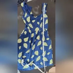 Stylish and vibrant, this Anthropologie Maple blue and green leaf print 100% silk dress is perfect for any occasion. Has pockets! The bold colors and unique design make it a standout piece in your wardrobe. Flaw: clasp at back needs small repair/stitch or replacement.