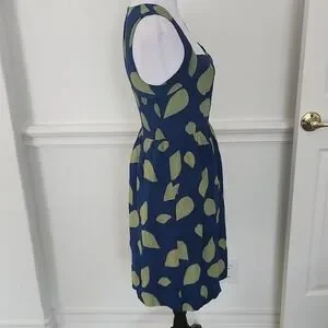 Anthropologie Maple 100% Silk Blue and Green Leaf Print Women's Dress 4 Flaw