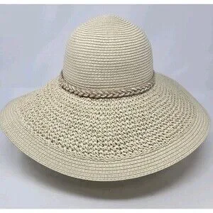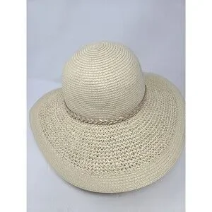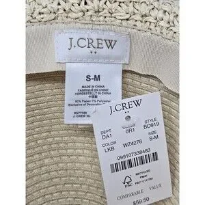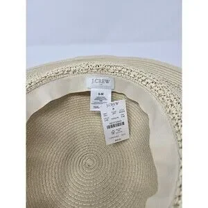 NWT J. CREW STRAW HAT WITH ROPE NATURAL BEIGE WOVEN PAPER WOMEN S/M WIDE BRIM