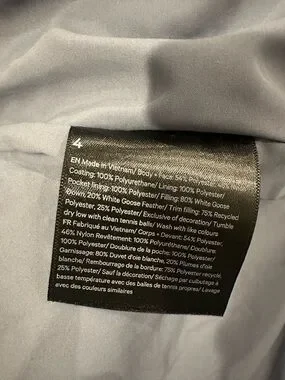 Warm insulated puffer jacket. High collar for extra coverage. Quilted boxy design. Subtle reflective logo on chest. Easy zip closure and roomy fit.