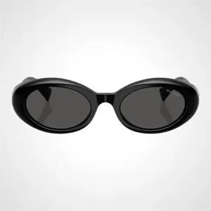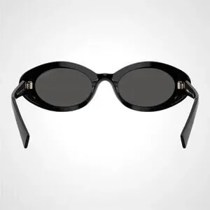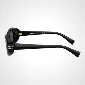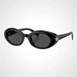 New MIU MIU Sunglasses Black Oval Womens Reverie Gold Grey Lens