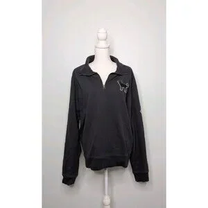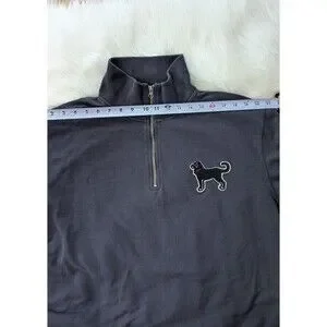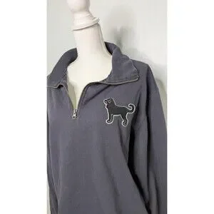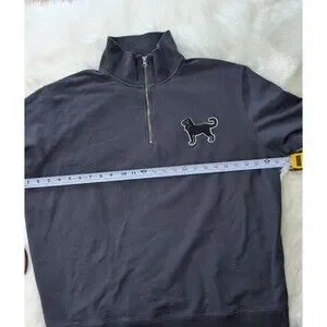 The Black Dog Women's XL Navy Blue Quarter-Zip Sweater is a stylish and cozy pullover sweater perfect for casual occasions in the winter and spring seasons. The long sleeves and 1/4 zip feature make it easy to layer and stay comfortable. Made by The Black Dog brand, this sweater is designed with a dog theme, adding a playful touch to your outfit. The navy blue color and XL size cater specifically to women looking for a regular fit and a personalized style option. Made in China, this sweater is a fashionable addition to any woman's wardrobe.