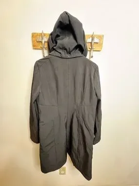 Sleek black hooded raincoat by MICHAEL Michael Kors. Full front zip closure. Subtle pocket detailing. Lightweight and water-resistant shell. Clean, modern silhouette for everyday wear.
