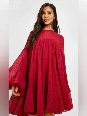 Boohoo Ruby Red Textured Swing Mini Dress