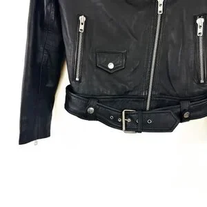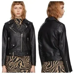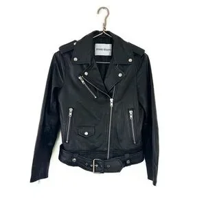 Stand Studio Polly Biker Black Leather Moto Jacket Womens 34 US XS 0 2