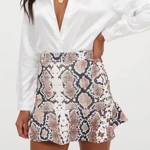 Nasty Gal Taupe Snake Print Flippy Hem Mini Skirt High Rise Y2K Size 6