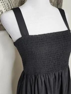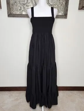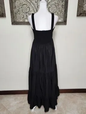 Zara Women's Black Smocked Bodice Sleeveless Tiered Maxi Dress Med Summer Casual