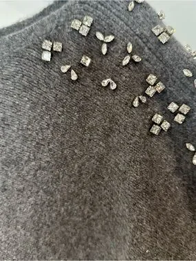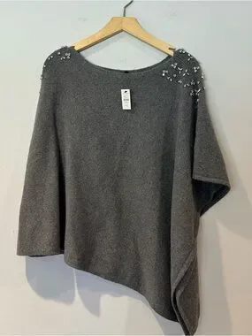 Talbots Women's Cotton Blend Soft Stone Embellished Poncho Gray Sweater