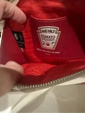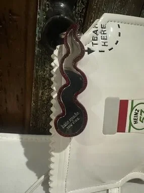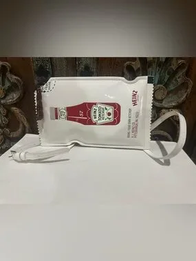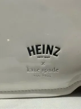 The Kate Spade Heinz Printed Patent 3D Packet Crossbody in Fresh White is a stylish and versatile accessory for women. With a rectangular shape and a small size, this crossbody bag features a zip closure, white handle/strap color, and gold hardware. The exterior is made of polyurethane and polyester with a patent finish, showcasing a fresh white multi-color pattern with the iconic Heinz character. Perfect for a party, cocktail event, or casual occasion, this bag also includes an original dust bag and is part of the Heinz Printed Patent 3D Packet Crossbody collection by Kate Spade New York.