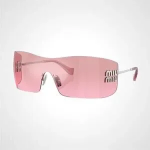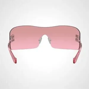 New MIU MIU Sunglasses Aube Silver Pink Mirror Rimless Wrap Authentic Womens