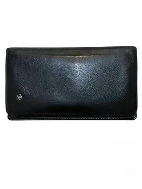Authentic CHANEL Black Leather Camellia Flower Bifold Long Wallet