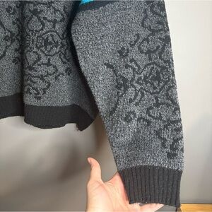 Stay cozy and stylish with this gray and blue patterned sweater. Perfect for any casual outing.