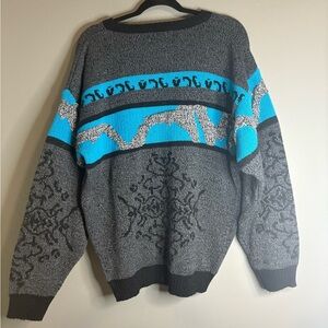 Vintage Nino Foriero Gray and Blue Abstract Crew neck Sweater, eclectic grandpa
