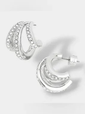 Pavé crystals bring captivating sparkle to these classy triple hoop earrings boasting a high-shine finish.